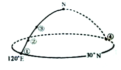1、单选题  下图为部分经纬线图,30°N纬线与120°E经线相交于①地,①、②、③、④地位于同一经线圈上,且①与②、②与③之间纬度差均为15°,N为北极点。读图回答下列各题。