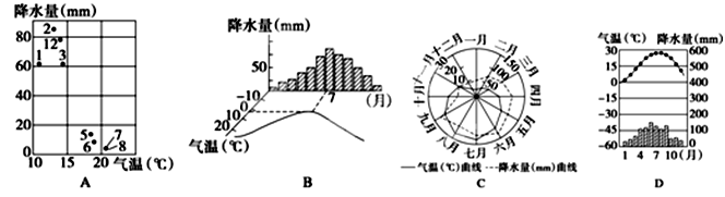 【小题1】以下四幅气温和降水量示意图与甲河流域气候特点相符的是 ( )