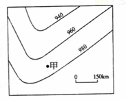 1、单选题 下图表示北半球中纬地区某日等压线分布状况,此时图中甲地的风向是
