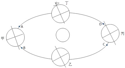 (2)在图中甲、乙、丙、丁各点中,_______点为春分日。