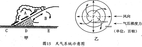 (1)从性质上看,甲图中B是____气团,C、D、E三地中气温最高的是____地。