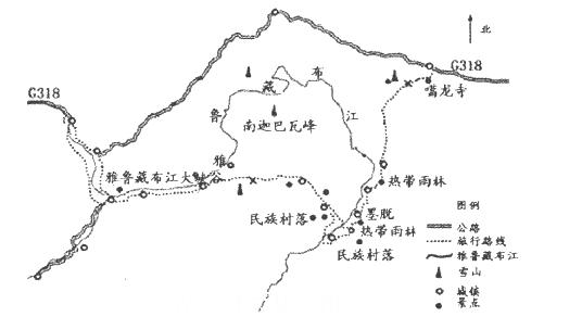 材料三?墨脱县地处雅鲁藏布江下游,属亚热带湿润气候,年降水量为2000毫米左右,地势由北向南急剧下降。2013年10月31日,墨脱公路通车仪式在波密至墨脱县80公里处举行,宣告中国最后一条未通公路的县正式通车。下图为墨脱旅行景点示意图。