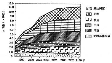 小题1:按图推算,预计2050年的世界人口数和发展中国家的人口数分别将达到
