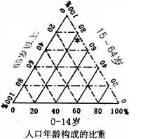 小题1:图中“*”表示我国人口年龄构成状况,其中0~14岁人口的比重约是