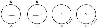 5、单选题 下列图示中,正确表示地球自转方向的是