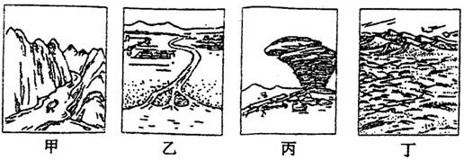 G.甲处岩层受水平挤压而坚硬,地表以沉积作用为主