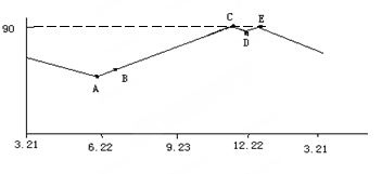 2、单选题  读某地正午太阳高度角年变化折线图,完成下列各题。