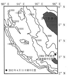 4、综合题 读下列材料及苏门答腊岛西岸附近海域等高线图,回答下列问题。(8分)