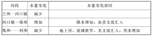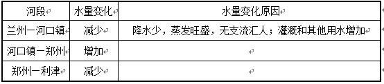 (1)黄河各河段的径流量存在明显差异,完成下表。(4分)