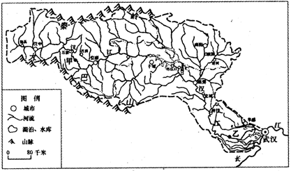 3、综合题 下图示意我国汉江流域。读图完成下列问题: