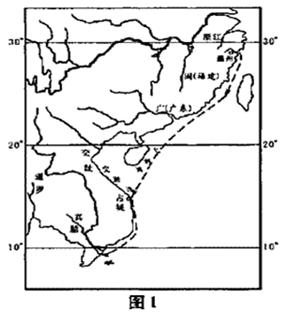 5、单选题 《真腊风土记》(元)记载:①自温州开船,西南行,历闽、广海外诸州港口,过七洲洋,经交趾洋到占城。又自占城顶风可半月到真腊;②真腊四时常如五六月天,不识霜雪,半年有雨,半年绝无;③信教者削发穿黄,偏袒右肩,其下系黄布裙,跪足。据此并结合图1,回答题。