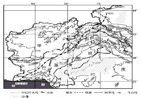 (3)中巴两国计划建一条从巴基斯坦瓜达尔港到中国新疆喀什的中巴铁路(如图5中所示),指出中巴铁路对我国经济发展的积极意义。(6分)