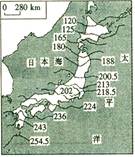 2、单选题 读日本日平均气温≥10℃的日数分布图(图中数字单位:日),回答题。