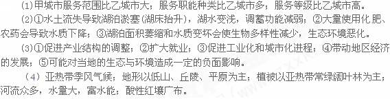(1)比较甲、乙两城市服务功能的主要差异。(6分)