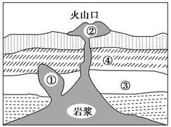 【小题1】从成因看,花岗岩属于侵入岩,是岩浆侵入岩层所形成的,生成的位置位于图中的①处。答案选A。