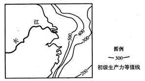 (1)指出图示海区海洋初级生产力的分布特点并分析其原因。(7分)