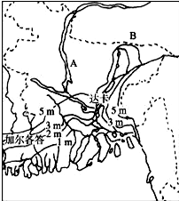 (2)该国属热带季风气候,降水集中且多暴雨;恒河三角洲地势低平,排水不畅;恒河上游植被破坏严重,水土流失严重,导致河床淤塞。