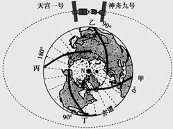 1.在神舟九号与天宫一号首次实现人工对接时,图中表示地球表面晨线的是2.自神舟九号发射到成功实现人工对接的过程中,下列现象正确的是