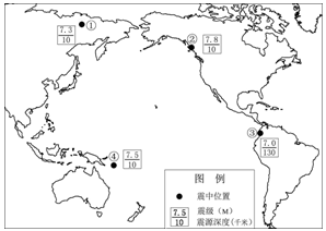 4、单选题 下图为“2013年1月至2月世界七级以上地震分布示意图”。读图完成下列问题。