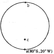 (1)在图中用⊕标注出极点的位置;并画出图示范围内过c点的完整经线。