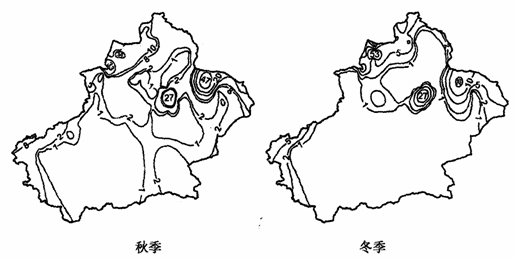 2、单选题 下图示意新疆维吾尔自治区四季大风日数空间分布(单位:天)。读图回答下列问题。