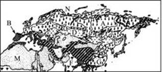 3、综合题 下图为“世界某地区自然带分布图”,读图完成下列问题。