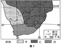1、单选题 读“某大洲局部自然带分布示意图”(图5),完成1-2题。