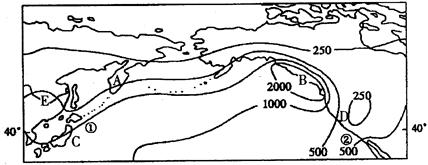 5、综合题 下图为世界局部地区降水分布示意图(单位:毫米),读图回答下列问题。(10分)