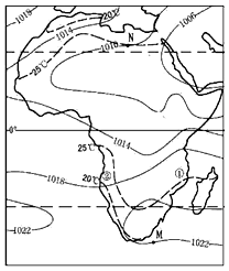 考点:该题考查非洲等压线和等温线分布规律的判读。