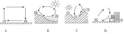 2、单选题 所给四幅“热力环流示意图”中,正确的是