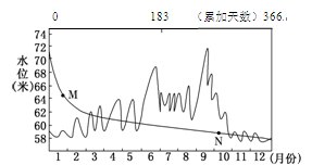 1.该河流的主要补给水源为2.若在该观测站上游修建一水库后,则历时曲线上的M、N点的变化是