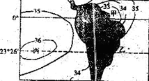 2、单选题 读世界某区域海水表层盐度(‰)分布图,回答: