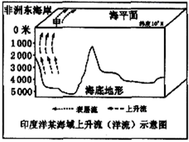 3、单选题 下图为印度洋某海域上升流(洋流)示意图,有关甲地洋流成因及海洋生物的叙述正确的是( )