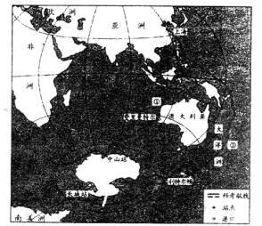 4、综合题 下图是中国某次赴南极科学考察的航线,此次中国南极科考队仍乘“雪龙号”船于某年11月20日在上海港起航出发,完成南极科考任务后,于次年3月20日返回上海港。读图并结合所学知识,完成下列要求。