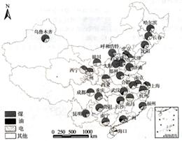 本题解析:我国能源消费比重煤炭最大,其次是电力。煤炭消费比重北方大南方小。电消费比重南方大于北方。油消费东南大于西北。