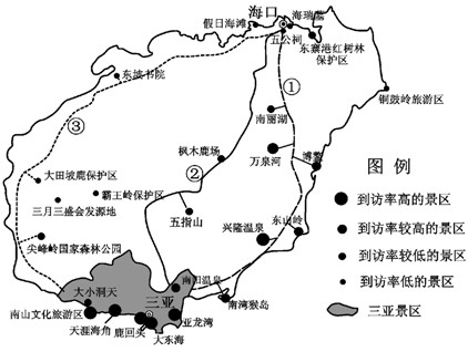 (2)从海口到三亚景区的①、②、③三条线路中,_____线路最受欢迎,原因是________。