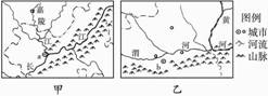 (1)材料一甲处的地质构造是 ,地形为 。(4分)