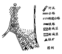 (1)该城区布局形式属___________式,城市地域结构呈___________式,老城区布局的主要区位因素是