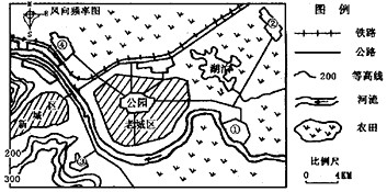 小题2:从环保的角度考虑.该市的化工厂最适宜布局在