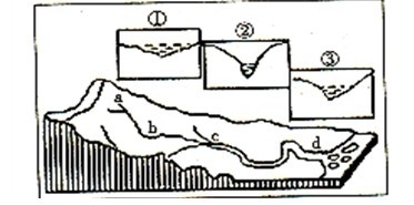 1.根据河流所处的地区判断,该河流的补给水源主要是2.图中b、c、d三个地区附近河流的横断面与①、②、③对应正确的是3.该河流经过地区聚落分布密集的是