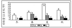 1.读图判断长江补给水源 2.图中显示冬季b项很少,其原因是