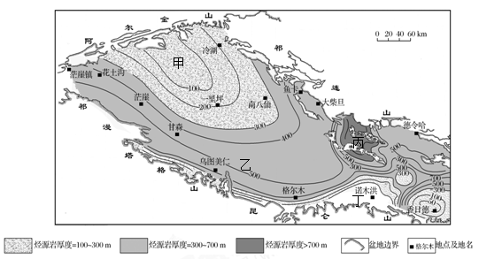 4、单选题 下图为我国某地区烃源岩沉积厚度等值线图,读图完成下列各题。
