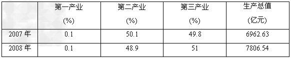 C.2008年该市第二产业产值下降