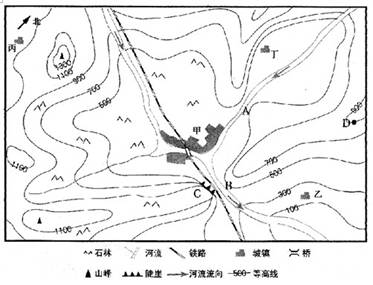 1、综合题 下图为“我国南方某区域等高线地形图”,回答下列问题。(15分)