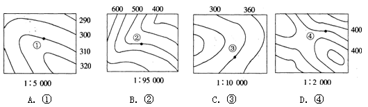 本题解析:本题考查地形图判断,本题必须结合比例尺,计算单位距离间的高差,以此判断坡度大小。