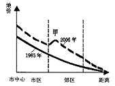 1、单选题 下图为“我国某市同一地区不同时期地价曲线图”。读图回答1—2题。