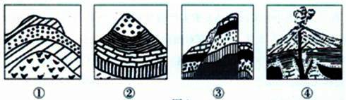 【小题2】①②③④四处的岩层比较,年龄最轻的岩层是 ( )