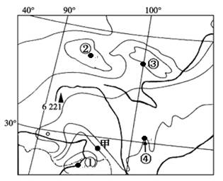 (2)图中,甲、乙、丙、丁四地风速最大的是_________;气压最高的是________。(2分)