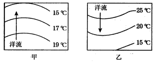 2、单选题 下图中,甲、乙两图分别表示两股洋流和海水表面温度分布。其中正确的叙述是
