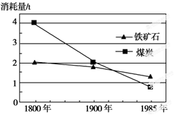 4、单选题 下图是每冶炼1吨钢铁所需原料的变化图,读图回答问题。